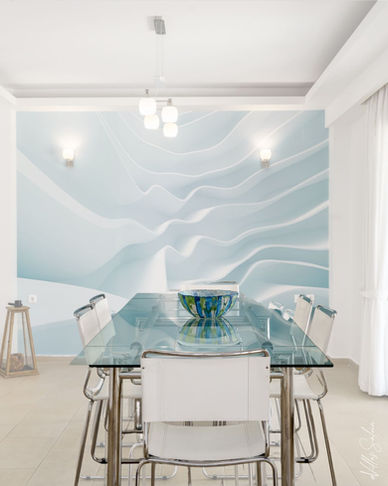 Η πλήρως εξοπλισμένη κουζίνα διαθέτει φούρνο μικροκυμάτων, ηλεκτρική κουζίνα με κεραμικές εστίες, ψυγείο, κατάψυκτη, πλυντήριο πιάτων και όλα τα απαραίτητα σκεύη για να ετοιμάσετε γεύματα όπως στο σπίτι σας. Απολαύστε τα φαγητά σας είτε στην κομψή τραπεζαρία, είτε στη βεράντα δίπλα στην ιδιωτική πισίνα.